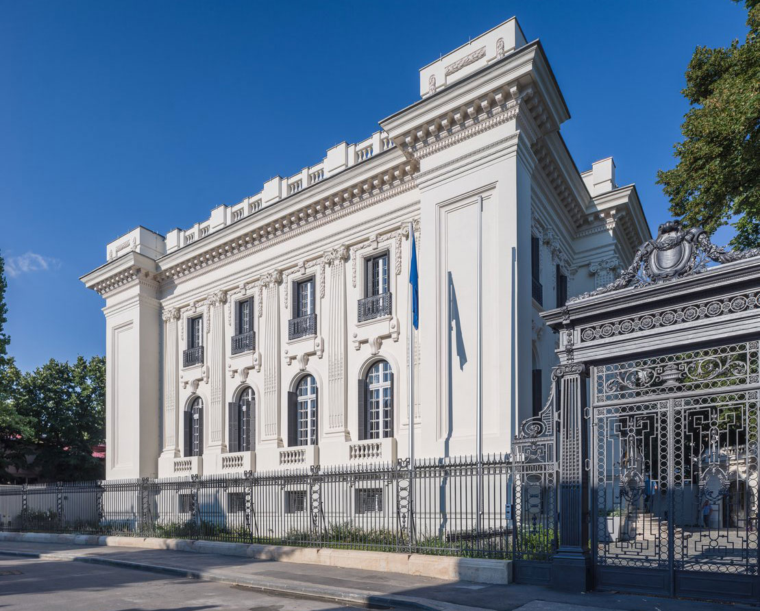 În urma retrocedării, a fost achiziționat de statul german. În 2006, construcția a fost evacuată în urma expertizei realizată de Biroul Federal pentru Construcţii şi Amenajarea Teritoriului, care a constatat instabilitatea în cazul unui seism. Ulterior s-a luat decizia restaurării, consolidării și conversiei în reședința ambasadorului RFG.